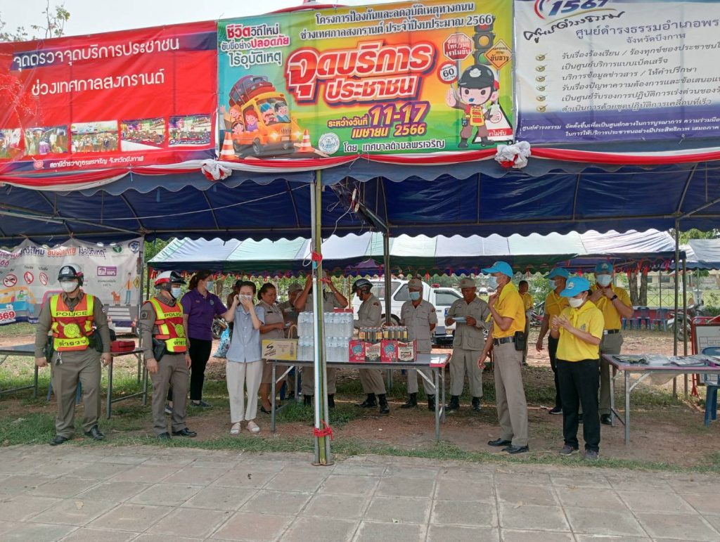 วันที่ 17 เม.ย.66 เวลา 10.00 น. ว่าที่ พ.ต.อ.พีรภัทร์ ปรมพุฒิ ผกก.สภ.พรเจริญ พร้อมด้วย ตำรวจจิตอาสา สภ.พรเจริญ และประชาชนจิตอาสา อ.พรเจริญ ได้เดินทางมา มอบน้ำดื่ม และเครื่องดื่มชูกำลัง ให้กับเจ้าหน้าที่ที่ปฏิบัติหน้าที่ประจำจุดบริการประชาชน ช่วงเทศกาลสงกรานต์ 66 และประชาชนที่กำลังเดินทางสัญจรบนท้องถนน เพื่อเป็นกำลังใจ แก่เจ้าหน้าที่ประจำจุดบริการประชาชนฯ และประชาชนที่กำลังเดิน ด้วยความห่วงใย และขอให้เดินทางปลอดภัย ถึงที่หมายโดยสวัสดิภาพ…