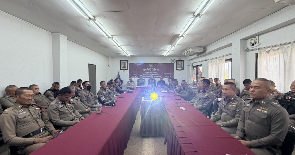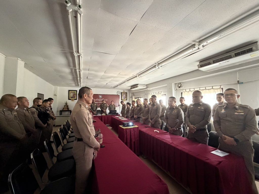 ประชุมประจำเดือนมีนาคม 2569 4 มีนาคม 2569 by admin / ข่าวประชาสัมพันธ์ วันนี้ 4 มีนาคม 2569 เวลา 09.00น. พ.ต.อ.สวาท จันทาคำ ผกก.สภ.พรเจริญ พร้อมข้าราชการตำรวจ ชี้แจงข้อราชการแนวทางการปฏิบัติหน้าที่ และร่วมใจยืนสงบนิ่งเพื่อส่งเสด็จสู่สรรคาลัยสมเด็จพระนางเจ้าสิริกิติ์ พระบรมราชินีนาถ พระบรมราชชนนีพระพันปีหลวง FacebookFacebookXXLINELine