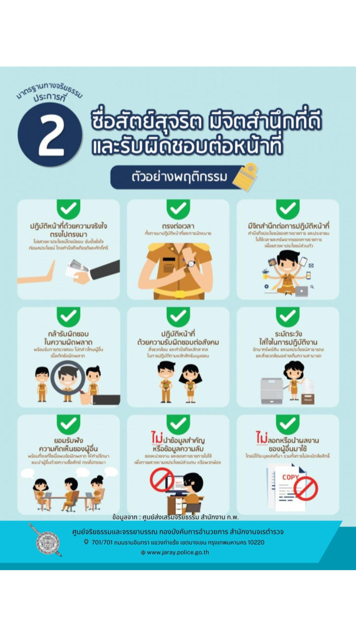 Home » ITA 2568 » 10.1 การดำเนินการเพื่อป้องกันการทุจริต » O22 คู่มือหรือแนวทางการปฏิบัติตามมาตรฐานทางจริยธรรม